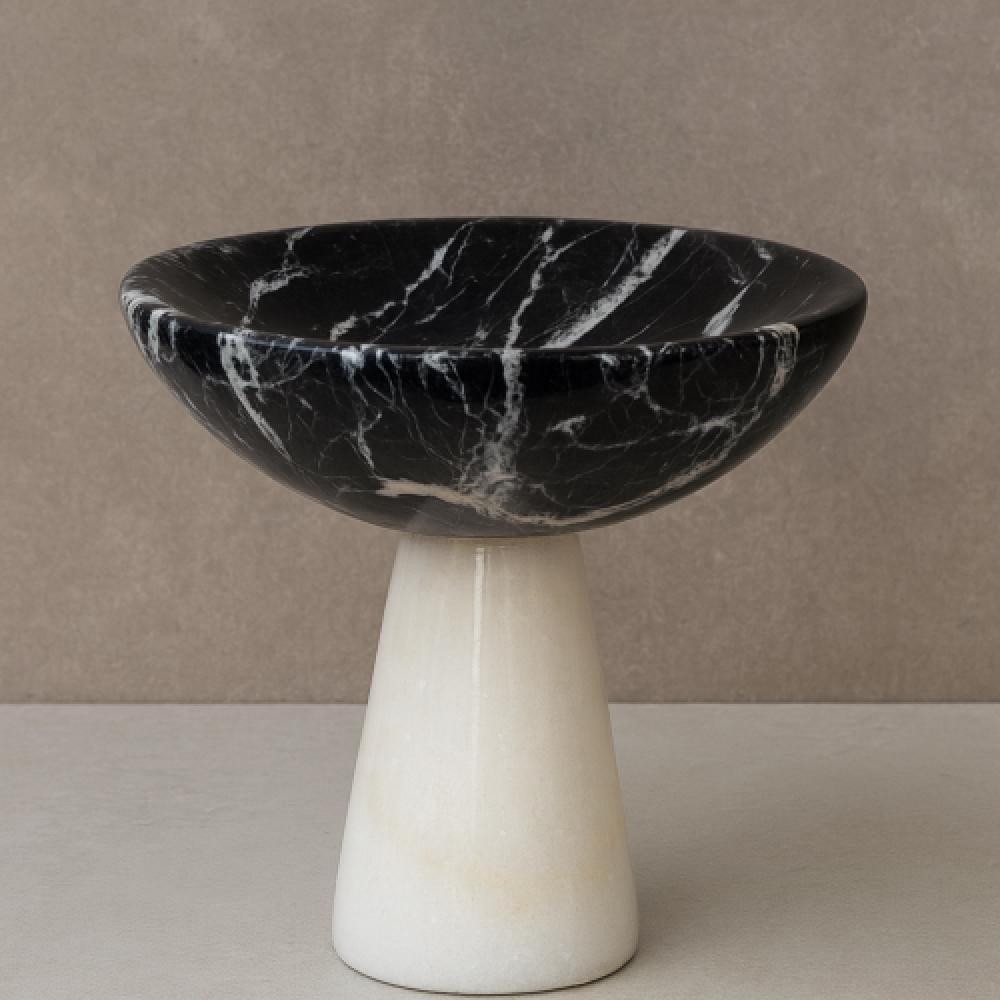 تحفة رخامية بتصميم أنيق تجمع بين الرخام الأسود والأبيض، تضيف لمسة فخمة لديكور المنزل أو المكتب. مصنوعة من رخام طبيعي عالي الجودة.
