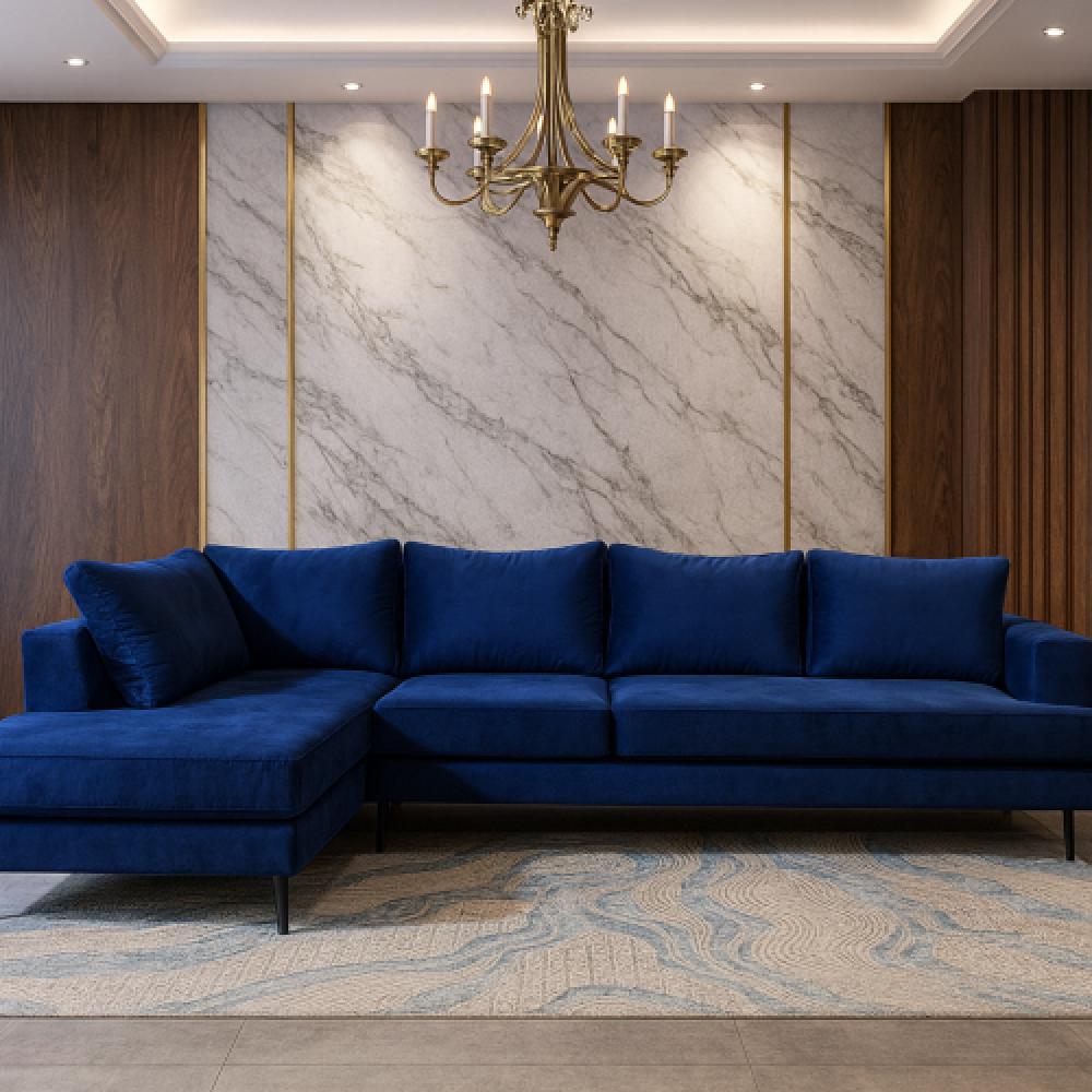 كنب كحلي مخمل حرف L
